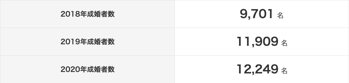 日本結婚相談所連盟(IBJ)に登録する会員の内、2020年は12,249名*がご成婚退会されています。