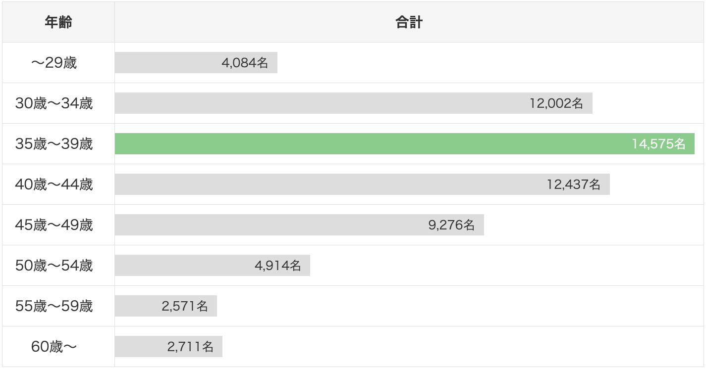 30代前半〜40代前半がボリュームゾーンとなっております。