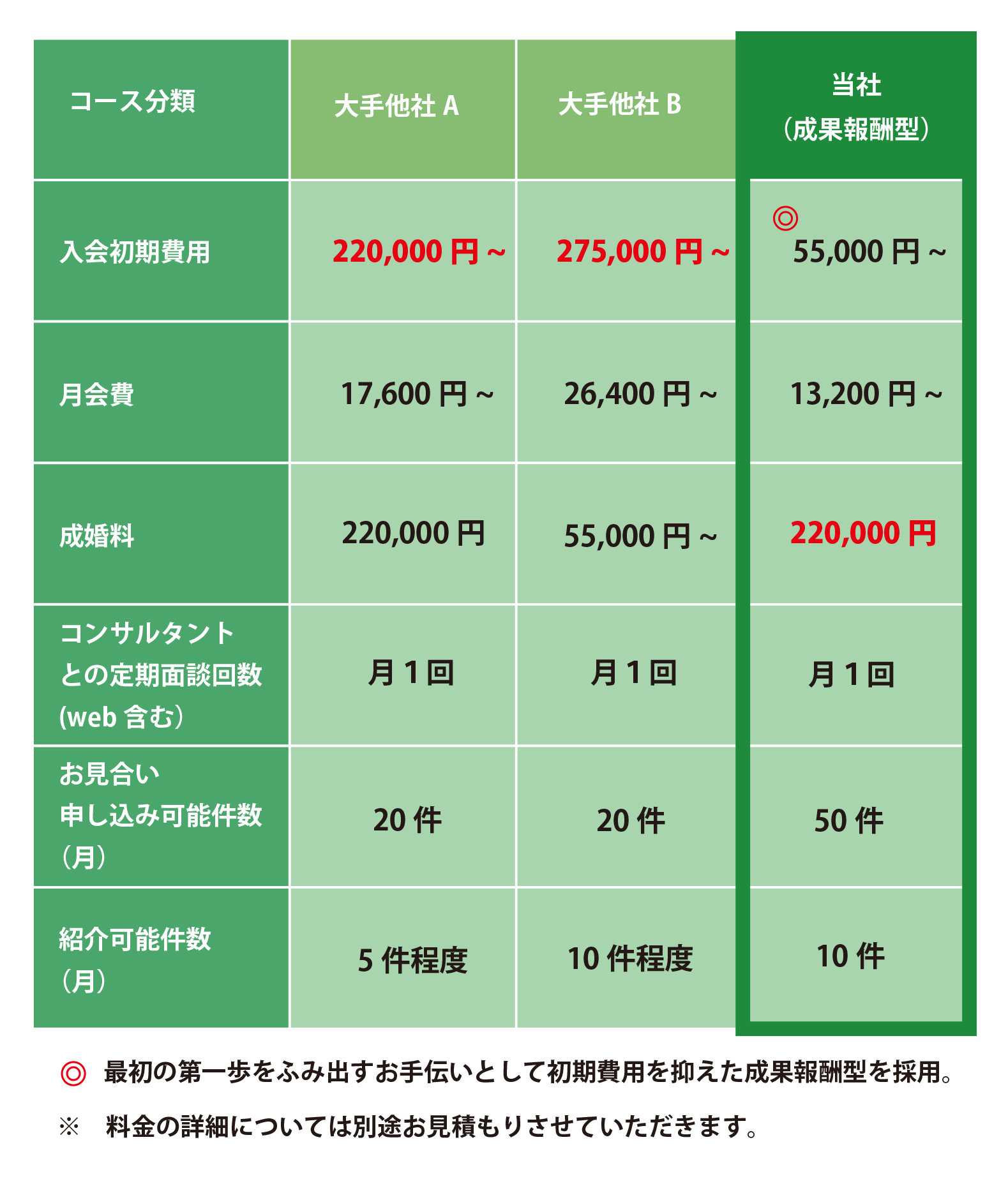 詳細は、「料金設定の自信」をご確認ください